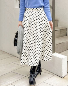 水卜麻美さんが「zip!」用していたスカートはNOLLEY’S ウォッシャブルスクエアドットプリントスカートです。