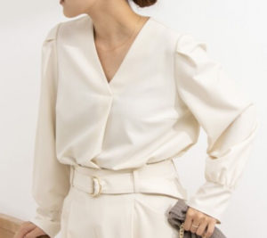 フロントタックがポイントのセットアップシリーズのブラウスです。