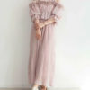程よく入った肩周りや袖のギャザーが女性らしいドレープを生み出してくれます。