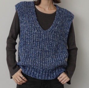 「若草物語」で堀田真由さんが着用していたベストはSENSE OF PLACE(センスオブプレイス)メランジラメVネックベストです。