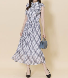 「マイダイアリー」で吉川愛さんが着用しているワンピースはSwingle オリジナルチェックフリルショルダーシフォンワンピースです。