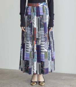 本来パッチワークでは再現が難しい軽やかさを、プリントすることによって可能にしたロングスカートです。