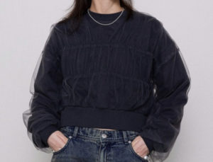 「モンスター」で趣里さんが着用していたスウェットシャツはMAISON SPECIAL Tulle Layered Sweatshirtです。