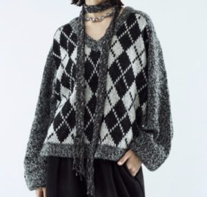 「ホンマでっかTV」で七五三掛 龍也さんが着用しているニットはseyto Argyle melange V-neck knitです。