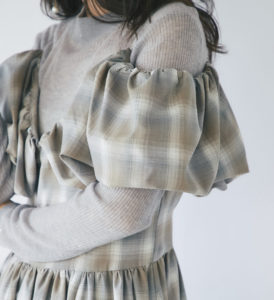 ギャザーを寄せたボリュームのあるパフスリーブは長めの袖口リブで肘下が膨らみ、可愛らしいシルエットになっています。