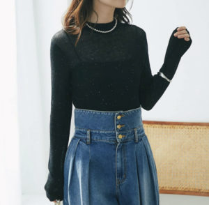 トレンドのシアー素材でさりげなく光る小さなスパンコールが品の良いニットプルオーバーです。