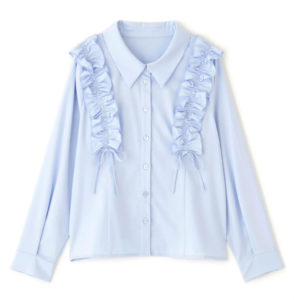 肩にあしらったフリルが華やかに映えるブラウス。