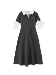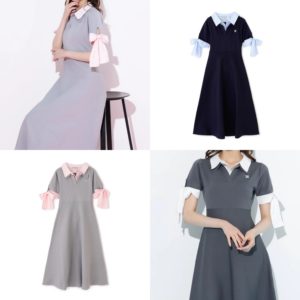袖のリボンがキャッチーで華やかなダブル襟を取り入れたワンピース。