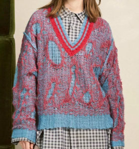 モヘアウール混の糸をシアーに編立てることで立体的な柄を表現。
