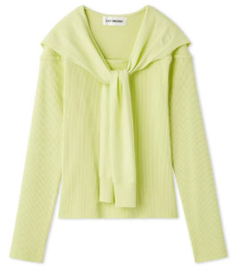 釦の取り外しでカーディガンとしてもボレロとしてもビスチェとしても着用できるマルチウェイなアイテムです。