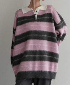 ふわふわのシャギーニットが可愛いラガーシャツ。