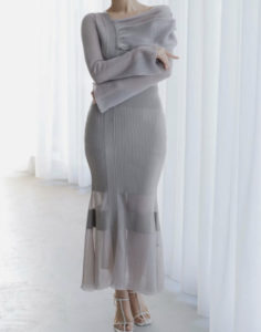 肌触りの良い細番手の糸を使用し、フィット感のあるリブ編みでキレイめに仕上げたマーメードシルエットで、スタイルアップ効果も抜群な1枚です。