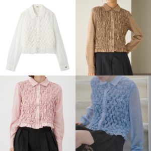 部分的にシャーリング加工を入れて生地に立体感を出したクロップド丈のブラウスです。