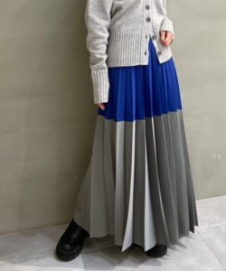 鮮やかなバイカラーが目を惹くプリーツスカートです。