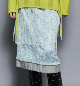 サテンスカートとビジュースカートがセットになったレイヤードスカート。