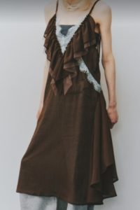 レースをレイヤードしたキャミソールドレス。