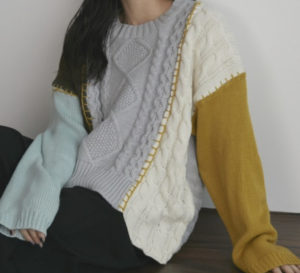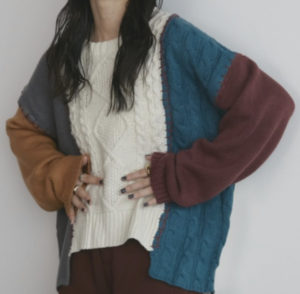 ドラマ「相続探偵」で恒松祐里さんが着用していたニットはMERLOT ランダムステッチルーズニットです。
