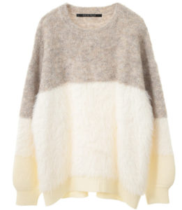 素材MIX配色プルオーバーは、ふわふわともこもこの異なる表情のニットをミックスしたプルオーバーです。