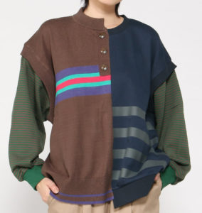 裏毛素材にボーダー生地とニットパーツを組み合わせたデザインカットソー。