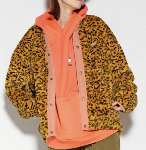 ミリタリーコートのライナーから着想を得たデザインのジャケットを、アニマル柄のフェイクファー素材でカジュアルに仕上げたアウターです。