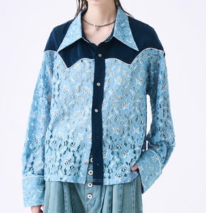 繊細なフラワーモチーフの総レースを全体に使用した、ラグジュアリーなウエスタンシャツ。