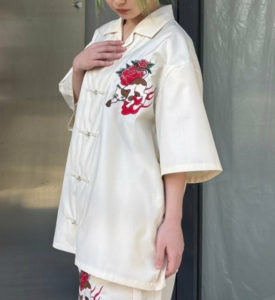 「メシドラ」で兼近大樹さんが着用していたシャツはseyto Western lace short shirtです。