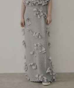 上白石萌歌さんが「笑神様は突然に…」で着用していたスカートはJ1U by LA BELLE ETUDE スカート メニーリボンニットIラインスカートです。