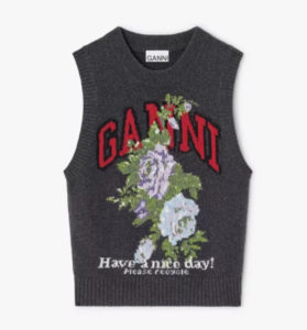 「ラヴィット」で上白石萌歌さんが着用しているニットベストはGANNI Dark Grey Rose Wool Vestです。