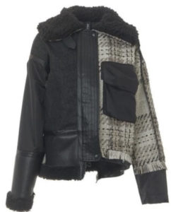 前後で異なる無地・柄ブロッキングに加え、袖のヘリンボーンテープがアクセントになっています。