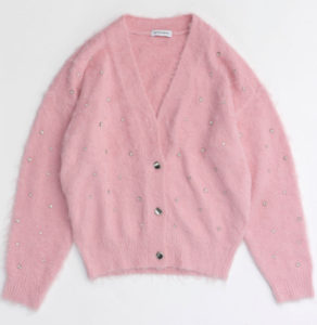 一つ一つ手作業で打ち込んだビジューがポイントのカーディガンです。