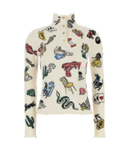 他にはないグラフィックプリントが目を惹くニットです。