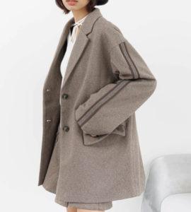 クラシカルなヘリンボーン素材に袖の配色ラインでモードな雰囲気に仕上げたジャケットです。