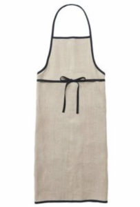 パイピングと紐のカラーがアクセントになったパイピングエプロン。