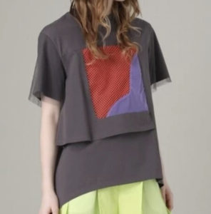 大メッシュと小メッシュを配色にして、アートのような切り替えをフロントに埋め込んだデザインTシャツです。