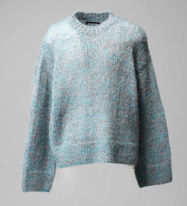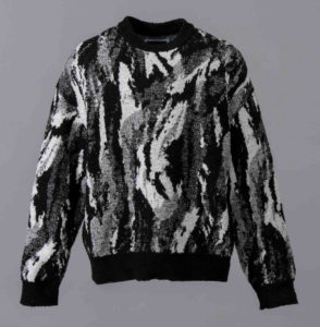 糸に風合いを持たせたテープヤーンを編み込んだデザインセーター。