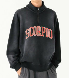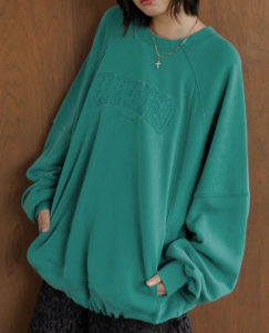 ピグメント加工と立体感のある刺繍デザインがポイントのスウェット。