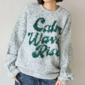 timeleszファミリアで篠塚大輝さんが着用していたニットはPAGEBOYLIM 【PBLIM】ブークレロゴニットです。