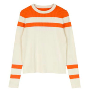 配色が目を引くマルチボーダーリブニット。
