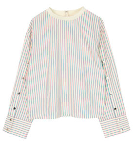 永野芽郁さんの着用衣装【アイボリーのストライプシャツ】「キャスター」