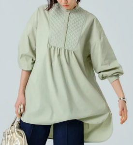 フロントにゴムを通していて、ギャザーを寄せたり伸ばしたりドロストアレンジが楽しめます。