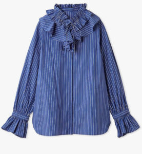 上白石萌歌さんの着用衣装【ブルーのフリルブラウス】「イグナイト」