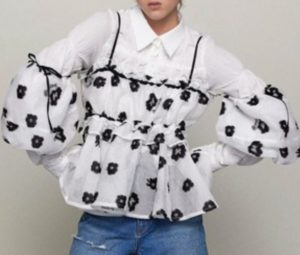 袖口はたっぷりとギャザーをいれたボリュームスリーブでよりリボンディテールを引き立てます。