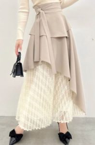 ドラマ「年下童貞くんに翻弄されてます」で森香澄さんが着用していたスカートはdazzlin スカート アシメティアードプリーツスカートです。