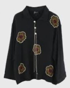 「櫻井・有吉 THE夜会」で長澤まさみさんが着用しているシャツはGLASS CYPRESS Black Silk Sunflower Tunicです。