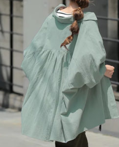 身体が泳ぐリラックスサイズにバックギャザーが美しいコクーンシルエットになっています。