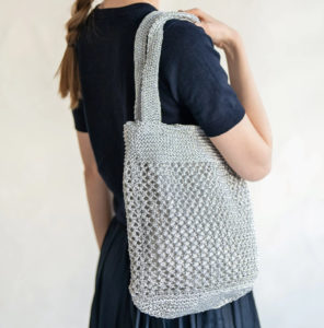 メタリックコードを贅沢に使用した涼しげな編みバッグです。