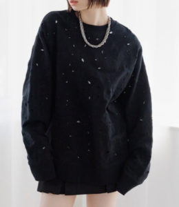 ドラマ「北くんがかわいすぎて手に余るので 3 人でシェアすることにしました」で本田翼さんが着用していたスウェットはAnui フラワーカットアウトスウェットです。