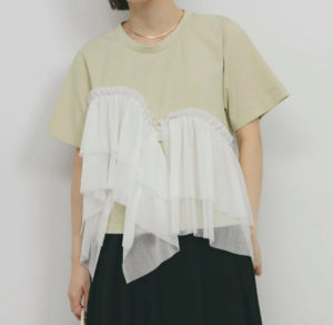 ドラマ「19番目のカルテ」で仲里依紗さんが着用していたTシャツはKBF アシメフリルドッキングTEEです。