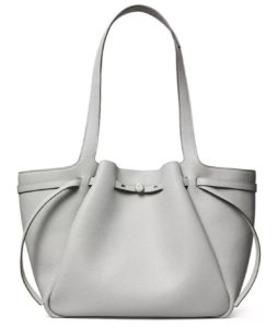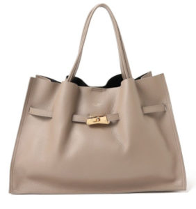 ソフトなペブルドレザーを使用し、ゆるやかなギャザーを寄せたロミー トートバッグ。