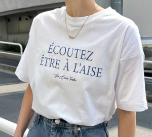 - 松本まりかさんの着用衣装 【ホワイト×ブラックのロゴのTシャツ】ドラマ「奪い愛、真夏」
